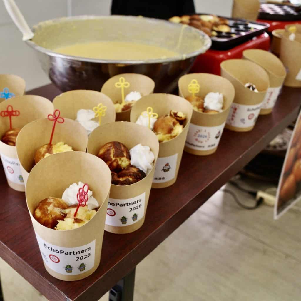 外の風は冷たくても、お雑煮・玉こんにゃく・ベビーカステラのおかげで