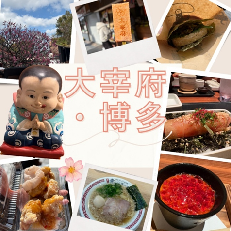 2日目は、大宰府天満宮へ行き、食べ歩きをしながら、梅が枝餅の5店舗食べ比べをしました。個人的には、「笠乃家」が推しでした!