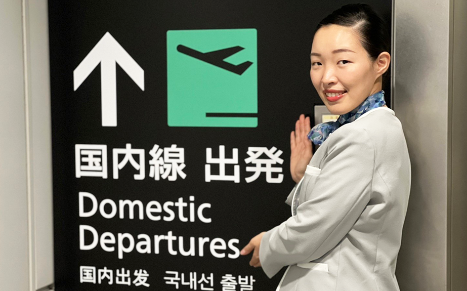 飛行機を利用するお客様の目的も年齢も国籍も様々ですが、お客様が笑顔で出発されたり、ふとした時にかけられる「ありがとう」の言葉が励みになる素敵な仕事だと日々感じています。