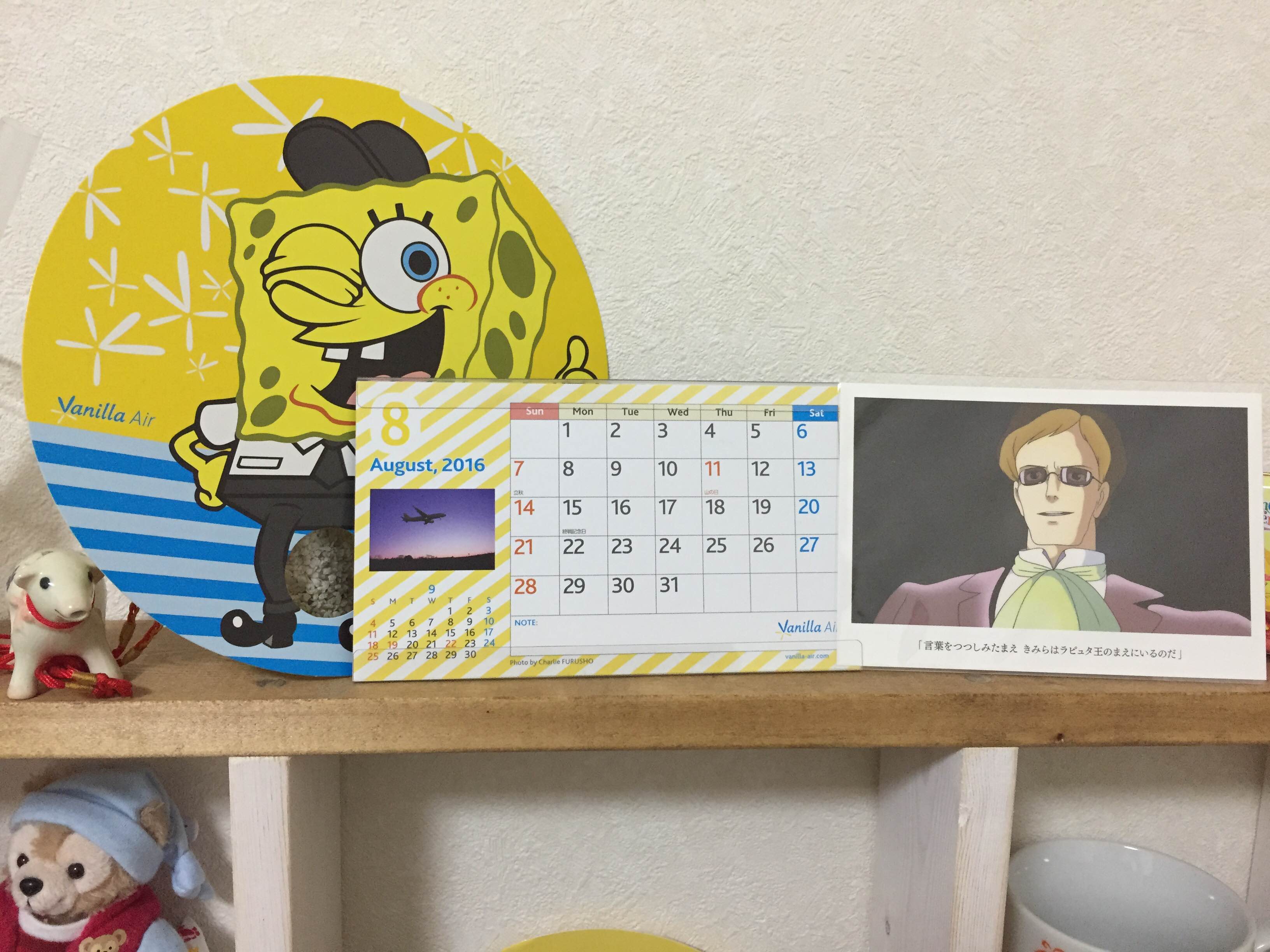 お次はバニラエアのキャプテンの格好をしたスポンジボブのうちわ!この暑い夏を乗り切るお供でもあります!
