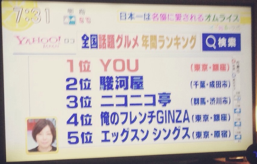 今朝のテレビ朝日「グッド!モーニング」で、全国話題グルメ年間ランキング(Yahoo!ロコ)が紹介され、